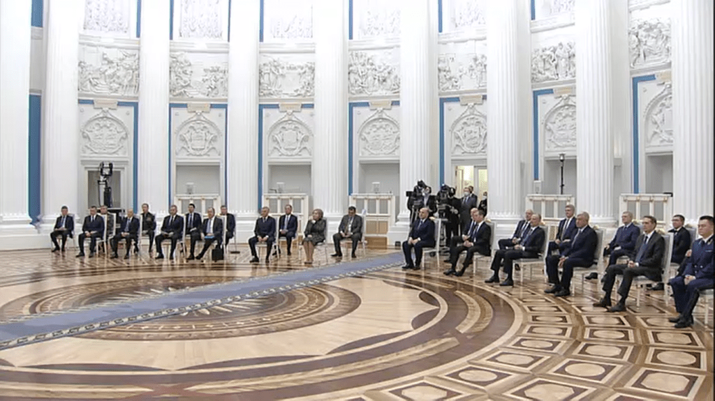 Vladimir Poutine a annoncé cette décision lors d’un long discours télévisé adressé aux Russes, prononcé après la réunion du Conseil de sécurité nationale dans la journée du 21 février 2022. Les observateurs attentifs se rappelleront les discours à résonance historique du président russe de mars 2014.
