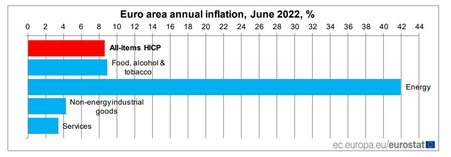 Euro area annual inflation hit record 8.6% in June, up from 8.1% in May according to a flash estimate from Eurostat, the statistical office of the European Union.