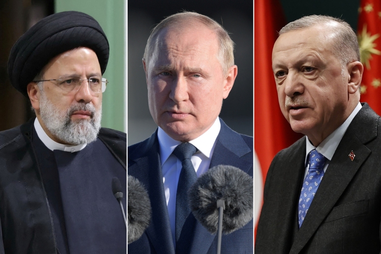Le président iranien Ebrahim Raïssi (à gauche), le président russe Vladimir Poutine et le président turc Recep Tayyip Erdogan se rencontrent le 19 juillet à Téhéran, dans le cadre du processus d’Astana, lancé en 2017.