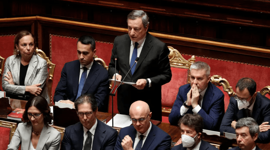 Le 14 juillet, Mario Draghi annonça son intention de démissionner de son poste de Premier ministre. Le président Sergio Mattarella n’a pas accepté la démission. M. Draghi a présenté sa démission au milieu d’une crise gouvernementale exacerbée par le refus du Mouvement cinq étoiles de voter sur un vote de confiance au Sénat italien. Le 20 juillet, Mario Draghi a demandé au Sénat de mettre aux voix une résolution de confiance à son égard.