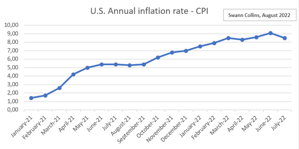 The Consumer Price Index for All Urban Consumers (CPI-U) was unchanged in July on a seasonally adjusted basis after rising 1.3 percent in June, the U.S. Bureau of Labor Statistics reported today. Over the last 12 months, the all items index eased and increased 8.5 percent before seasonal adjustment.