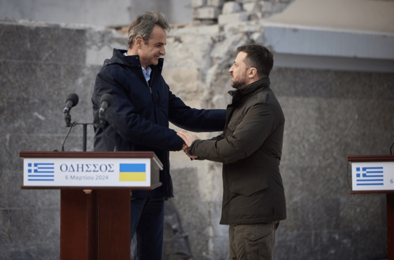 Volodymyr Zelensky a également remercié la Grèce pour sa « volonté de participer à la restauration de notre patrimoine culturel, en particulier à Odessa, qui a un tel lien avec l’histoire et la culture grecques ».
