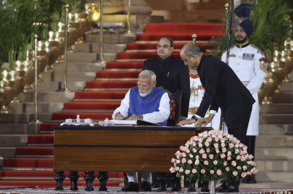 Après avoir prêté serment, Modi est devenu le premier Premier ministre depuis Jawaharlal Nehru à occuper le poste de chef du gouvernement pendant trois mandats consécutifs.