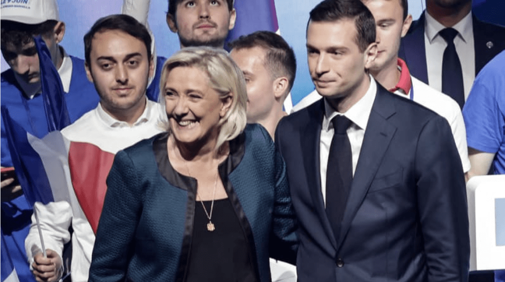 Le parti du Rassemblement national de Marine Le Pen et Jordan Bardella pourrait prendre la première place au premier tour. La deuxième place, selon les prévisions, serait occupée par le Nouveau Front populaire, coalition de partis politiques de gauche et d’extrême gauche. En troisième position, loin derrière, devrait se tenir le parti Renaissance, réunissant les soutiens au Président Macron.