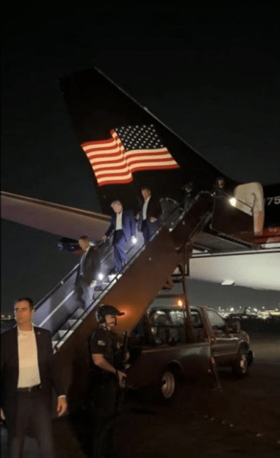 In a video posted by Donald Trump’s deputy communications chief Margot Martin, Mr. Trump gets off the plane, accompanied by US Secret Service agents.