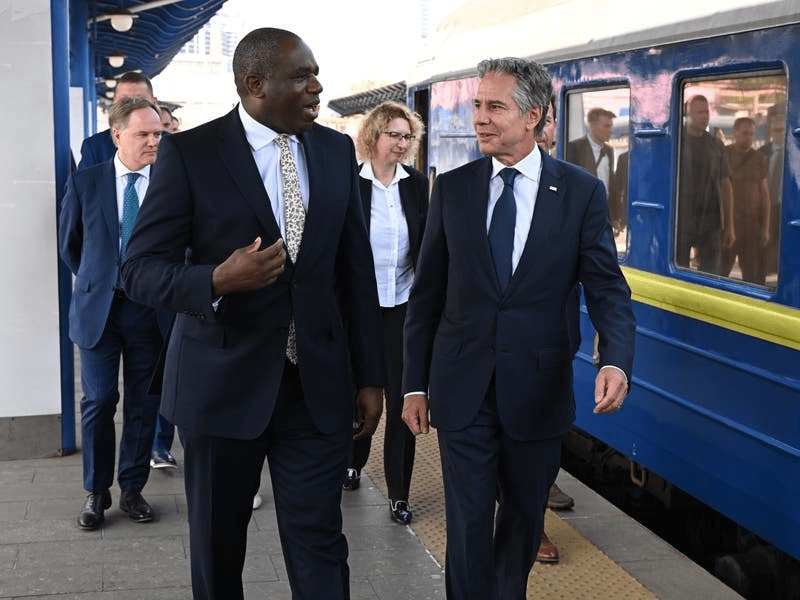 Le secrétaire d’État américain Anthony Blinken et le ministre britannique des Affaires étrangères David Lammy sont arrivés à la gare centrale de Kiev. Ils prévoient de rencontrer le président ukrainien Volodymyr Zelensky et de hauts responsables.