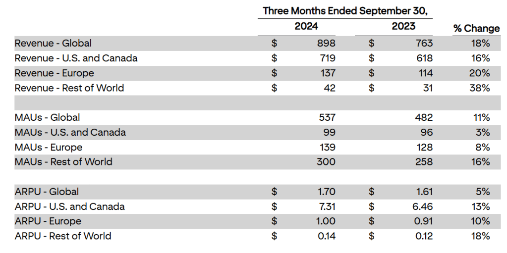 User Engagement: The platform has successfully attracted more users, contributing to its revenue growth. The number of monthly active users (MAUs) continues to rise, although the pace of user growth has shown signs of slowing compared to previous quarters.