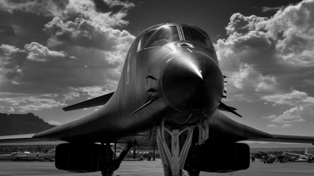 The B-1B is a U.S. supersonic heavy bomber capable of around Mach 1.2–1.25 and can carry roughly 71,000–75,000 pounds of ordnance, the largest conventional payload of any U.S. bomber. While the B-1B incorporates some radar cross‑section reduction and electronic warfare systems, it is not classed as a true stealth aircraft like the B-2 Spirit and is generally not described as a stealth bomber.